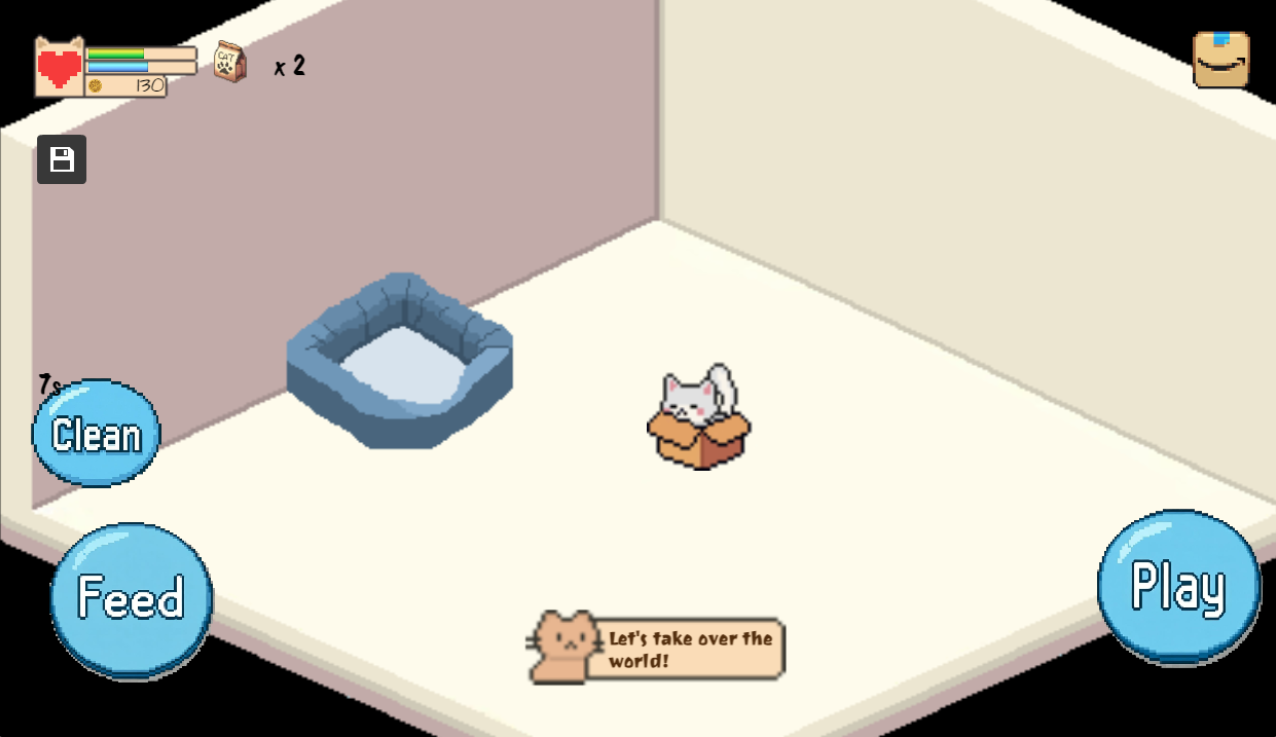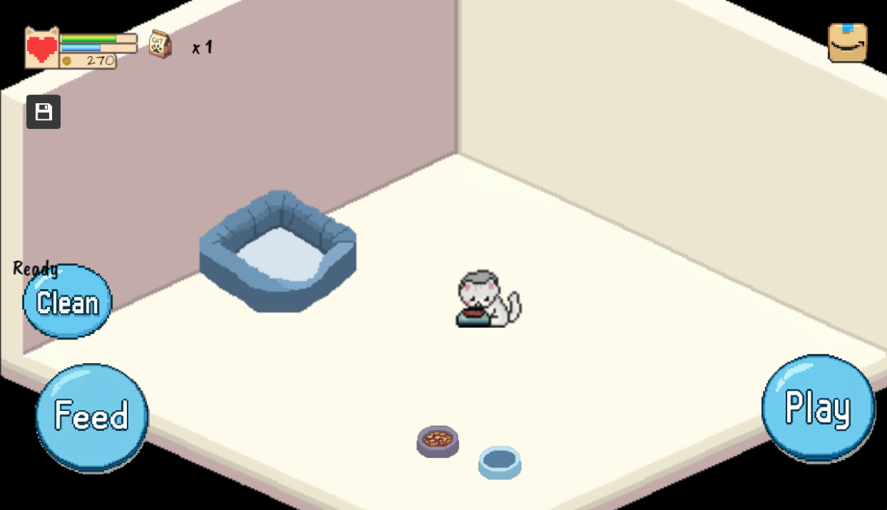 TinyPaws is a cozy, casual cat simulation game where you take care of a tiny cat in a tiny room.