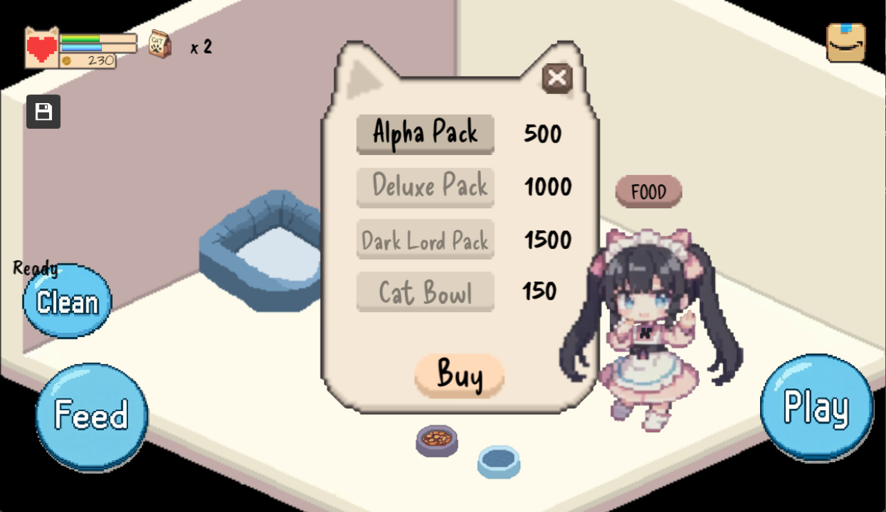 The cat and Decor model, music, and UI sounds I bought from Itch.io.